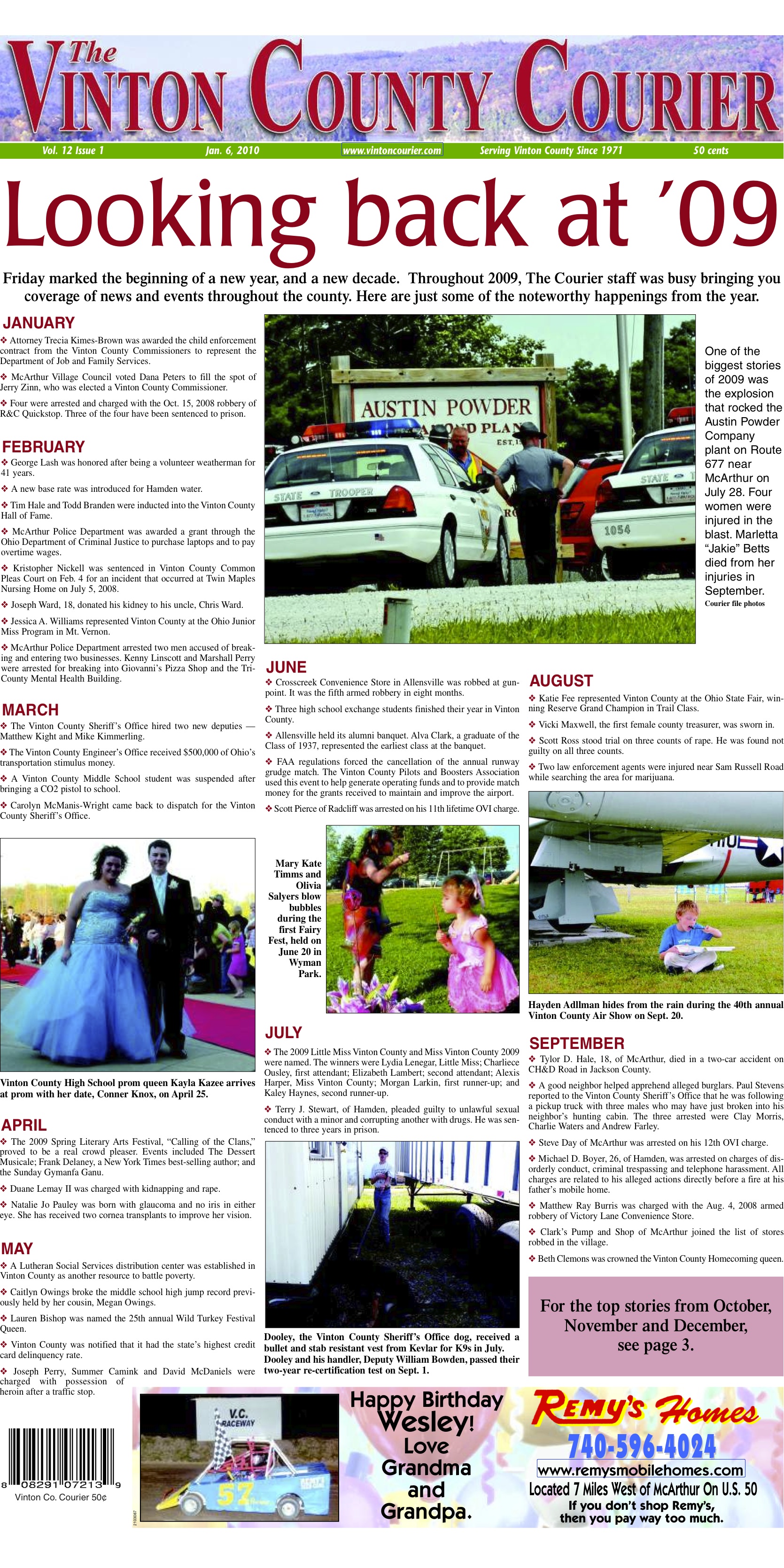 - One of the most challenging aspects of a weekly paper is the yearly review. Every year the staff compiles a list of notable events, and then it is up to the designer to put together a front page that includes a visually appealing timeline of events.