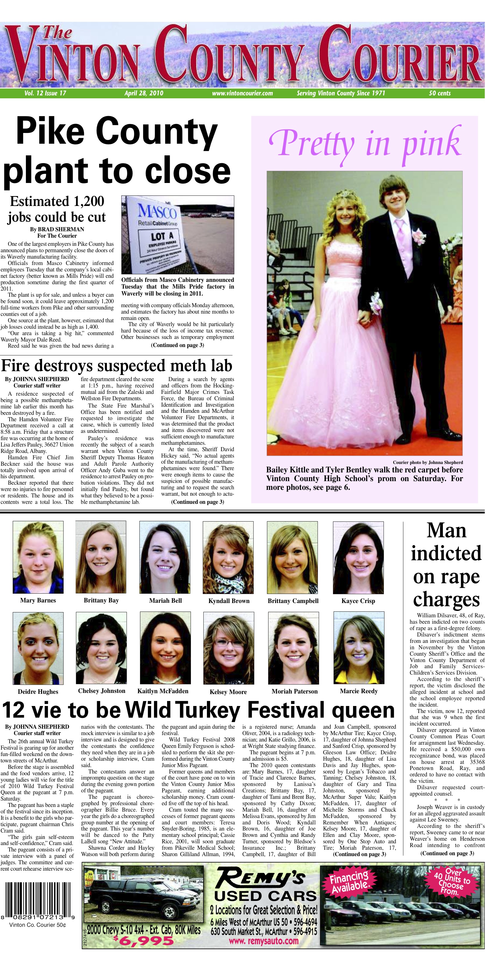 - Another tradition at the newspaper is putting headshots of pageant contestants on the front page. It is always a challenge trying to find a way to display 12, or more, headshots while still making the page look good. This is an unusual layout that I think works well.