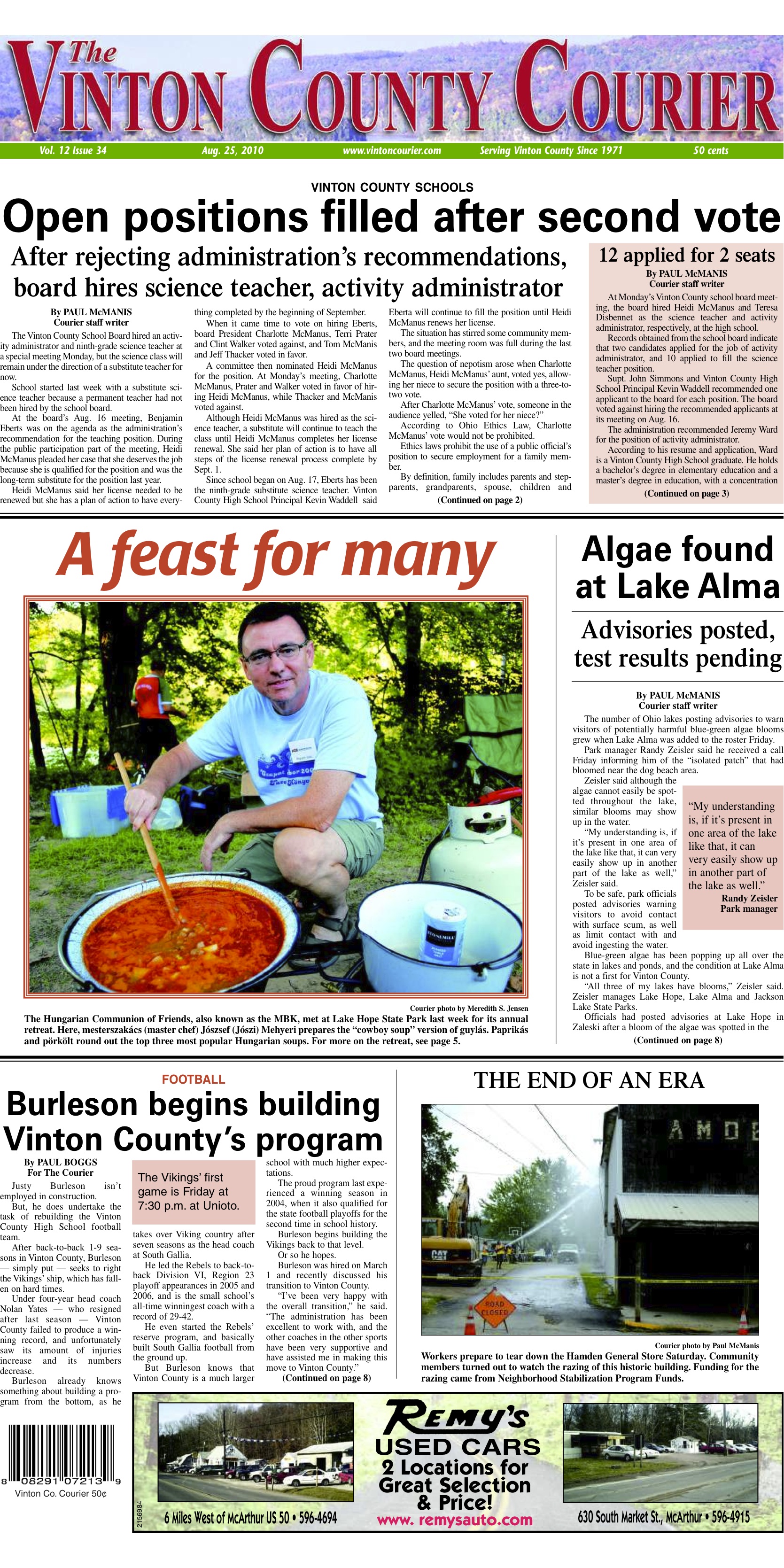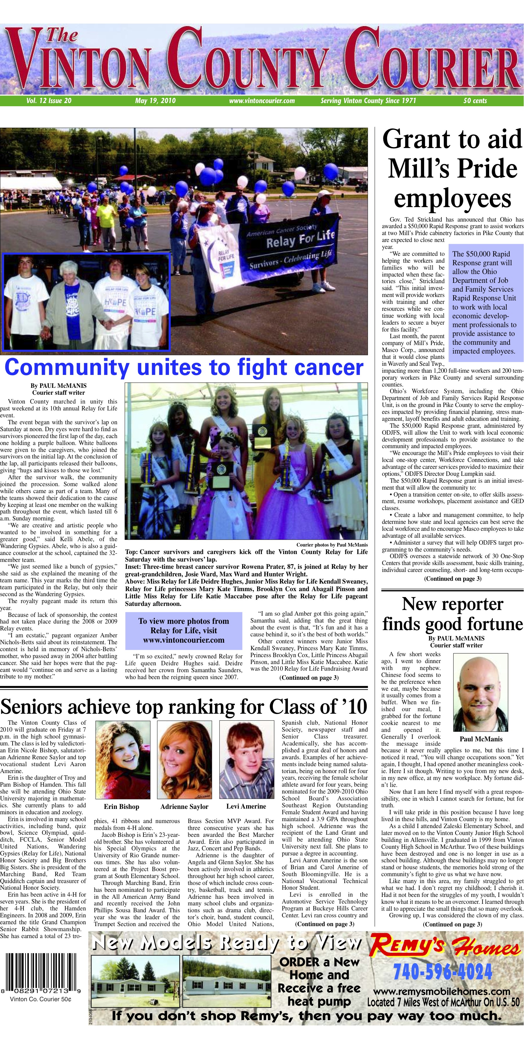 - This front page featured a photo package from the county’s Relay for Life event, as well as one my favorite headlines I’ve ever written. “New reporter finds good fortune” is a column from our new reporter, who before being hired opened a fortune cookie with some good news.